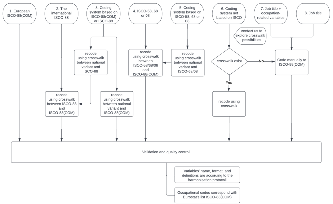The overall objective of the EPHOR mega cohort is to evaluate occupational risk factors and the occurrence or severity of major NCDs over the life course, including cancers, respiratory, cardiovascular, metabolic and neurodegenerative diseases and musculoskeletal and mental disorders, as well as multimorbidity and work participation. The EPHOR mega cohort is currently comprised of 29 participating cohort studies (though new cohorts may join). The purpose of this mega cohort occupational variable harmonisation protocol is to provide a protocol for harmonisation of occupational variables in each participating cohort for participation in mega cohort analyses related to Job title and EuroJEM defined exposure.